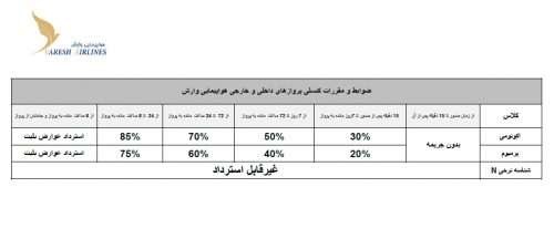 شناسه نرخی از زمان صدور بلیط تا 72 ساعت قبل از پرواز از 72 ساعت قبل از پرواز تا 24 ساعت قبل از پرواز از 24 ساعت قبل از پرواز تا 3 ساعت قبل از پرواز از 3 ساعت قبل از پرواز به بعد